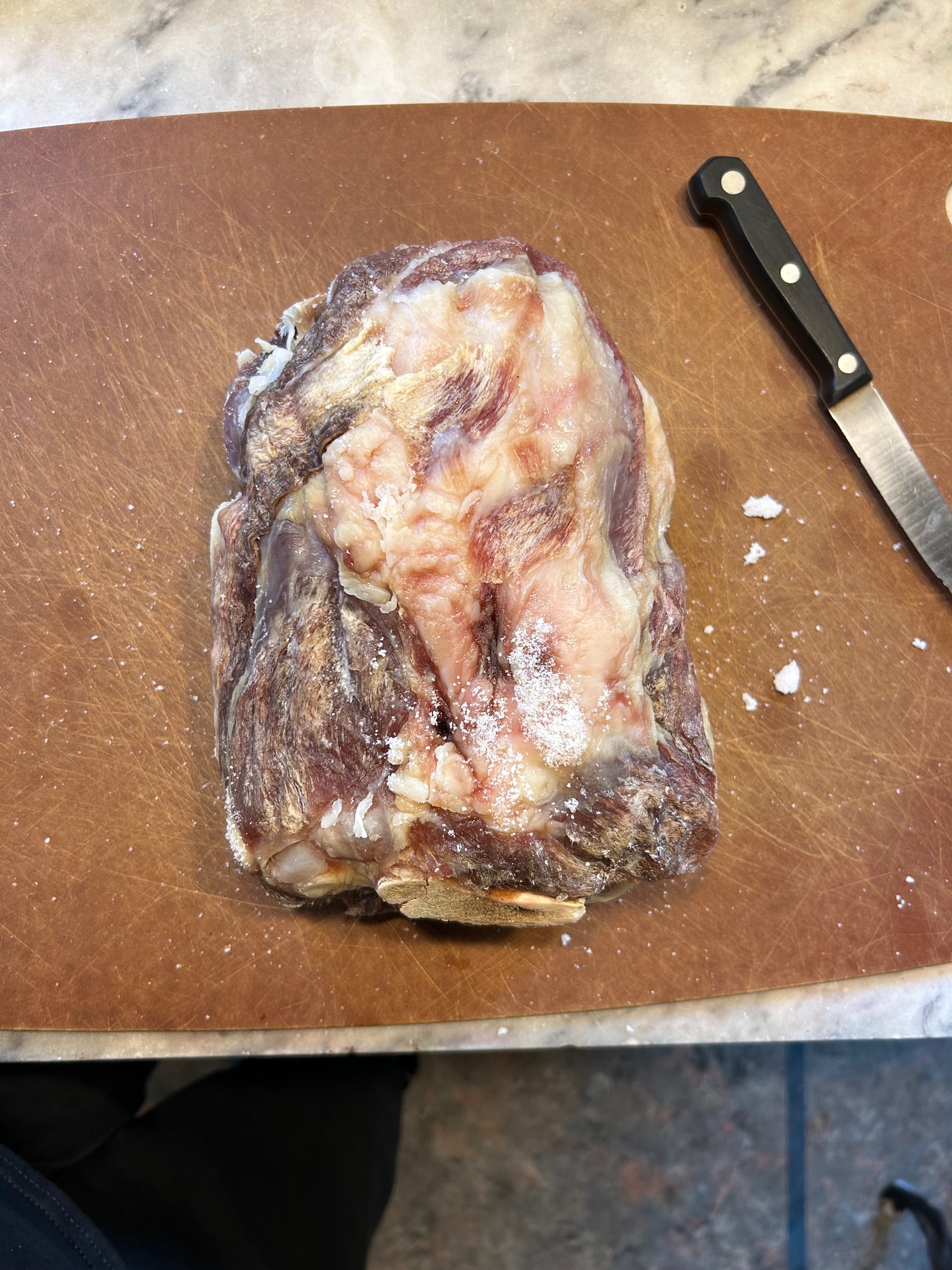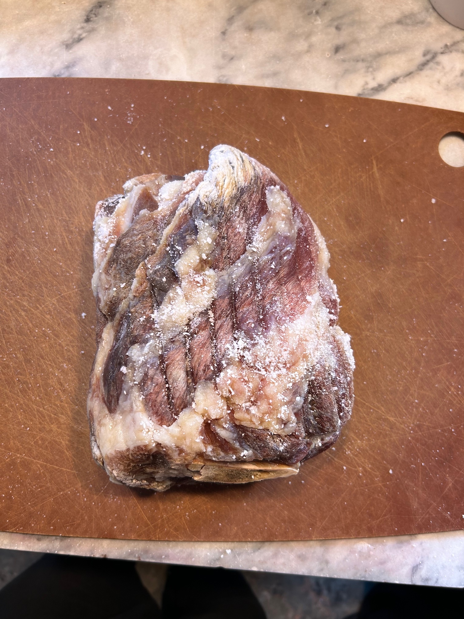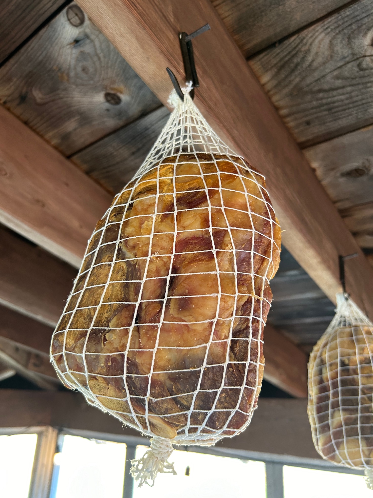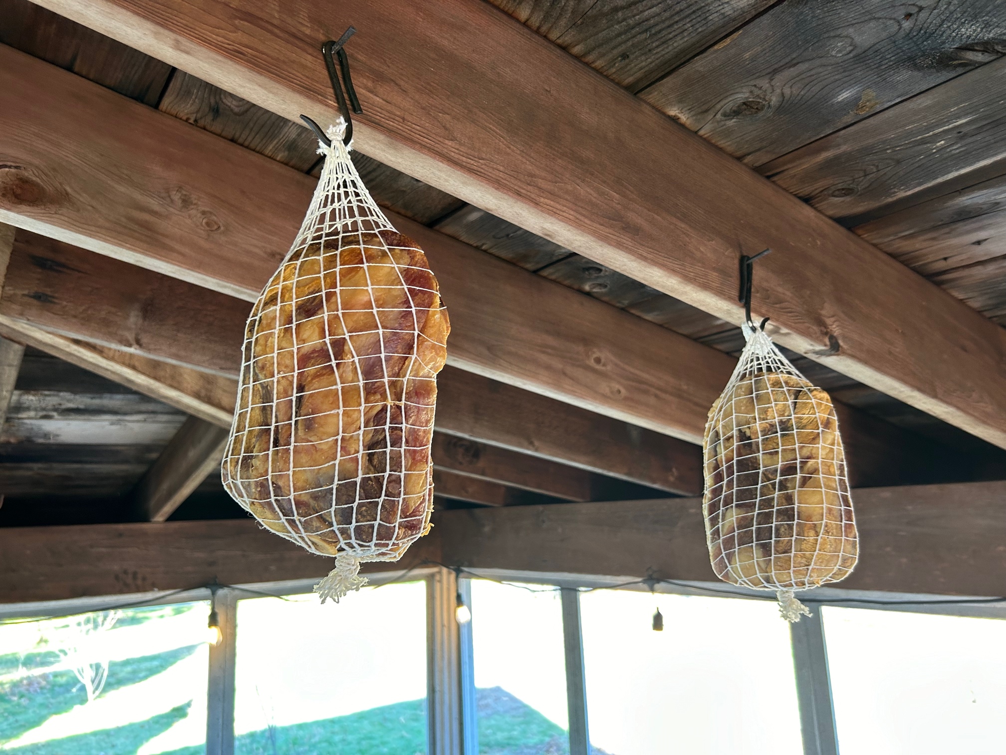 At the beginning of February I hung up two pork shoulders on my porch, packed in cure and wrapped in brown paper. My goal was to make country ham, a process described well by the University of Kentucky.