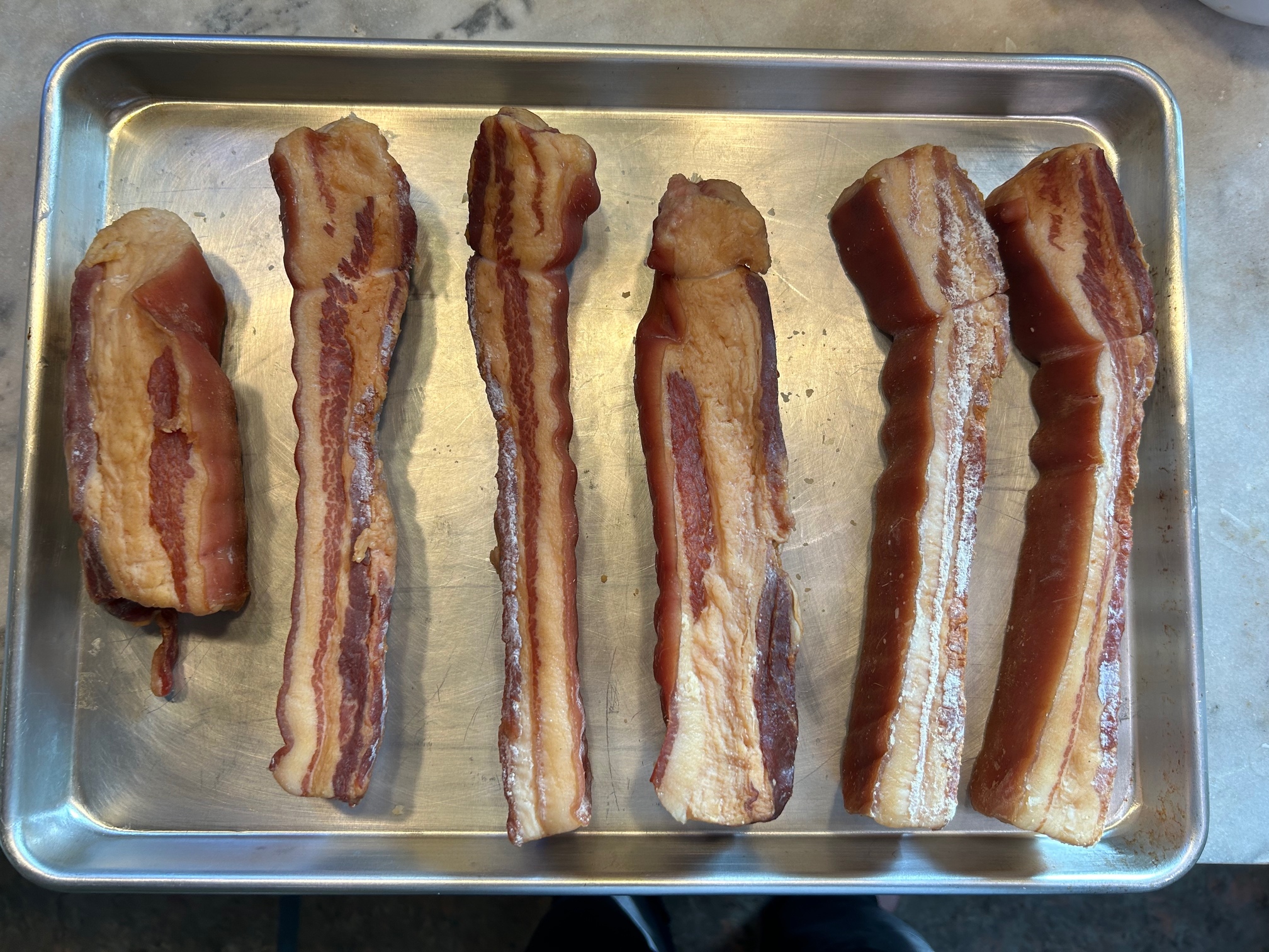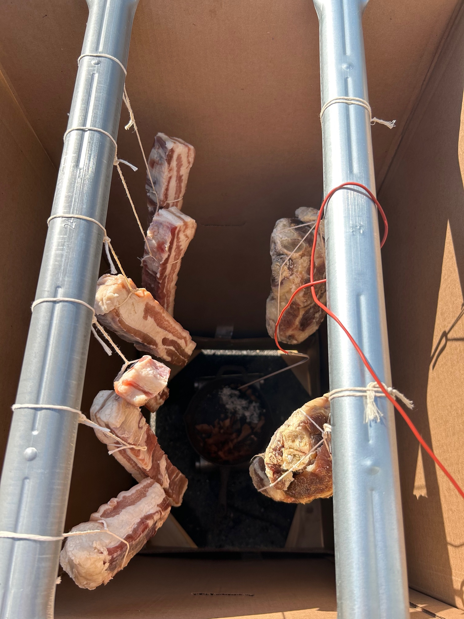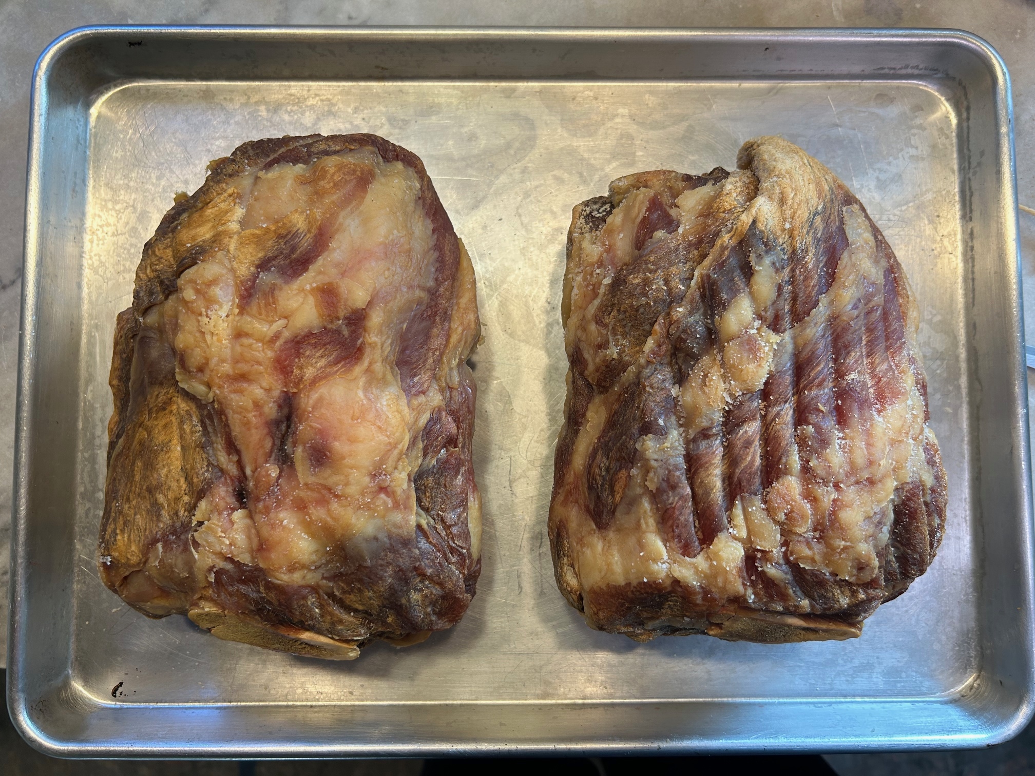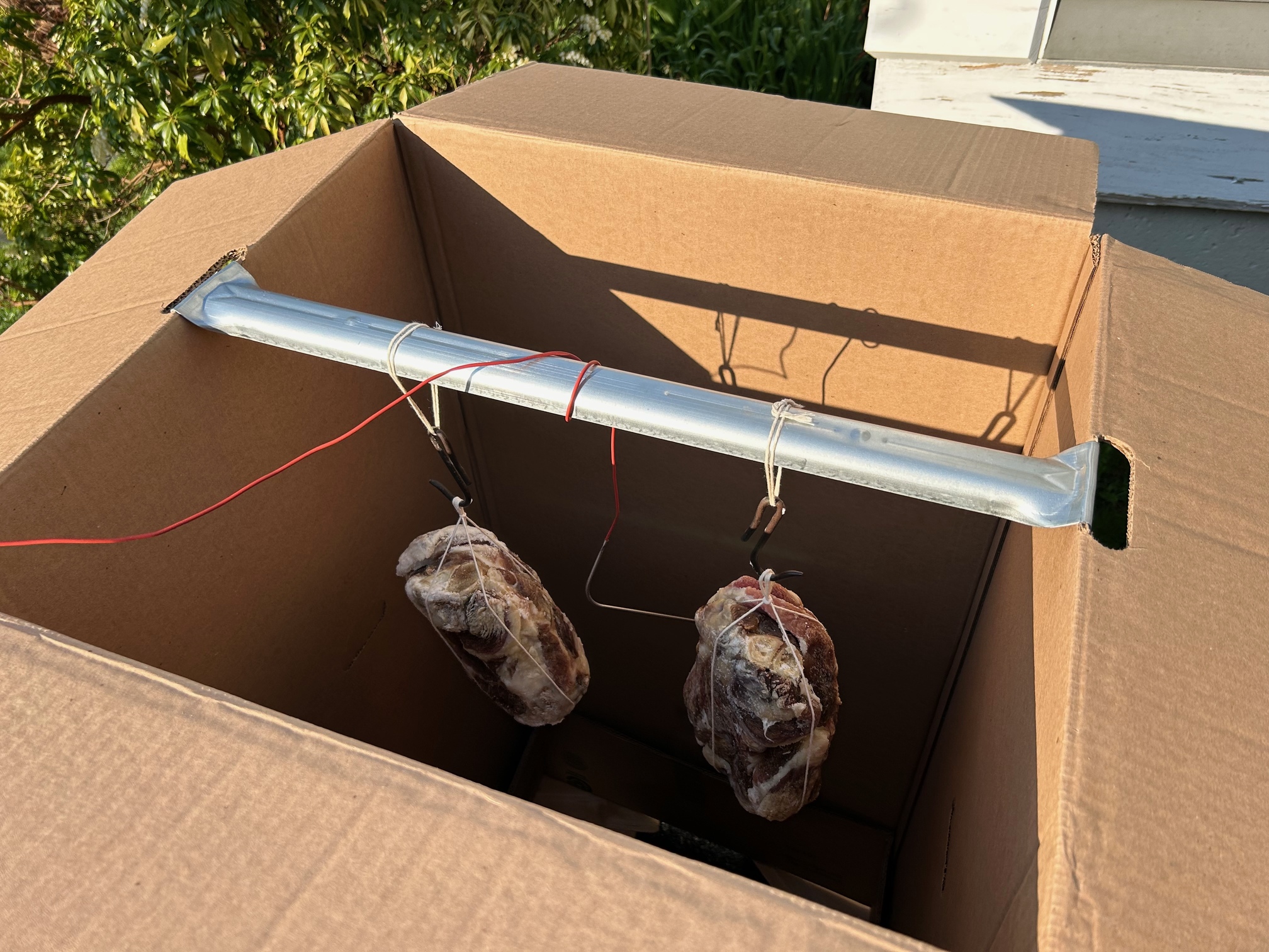 In mid-April, it was time to take them down and smoke them. Each one lost 40% of its weight, which is great news.